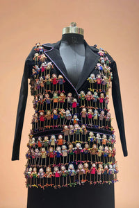 Each of the 648 handcrafted dolls is individually sewn onto the blazer by skilled artisans. From their ponytails to winter capes, delicate fingers to miniature jewelry — every doll is a masterpiece in itself. Together, they narrate stories of tradition, warmth, and timeless playfulness.