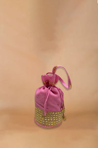 A minimal yet impactful design with broad golden linear embroidery. The tassel is finished with playful ghunghroos, creating a rhythmic charm when carried. It effortlessly blends traditional aesthetics with everyday elegance.