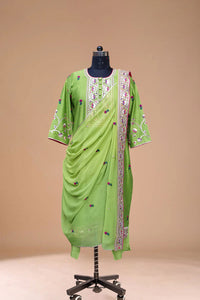 Bold yet tasteful, Vilasa showcases gota ribbon work layered with zari and resham on a plush muga silk kurta. The georgette dupatta adds a flowing finish to this striking ensemble. Fabric: Muga Silk (Kurta), Georgette (Dupatta)